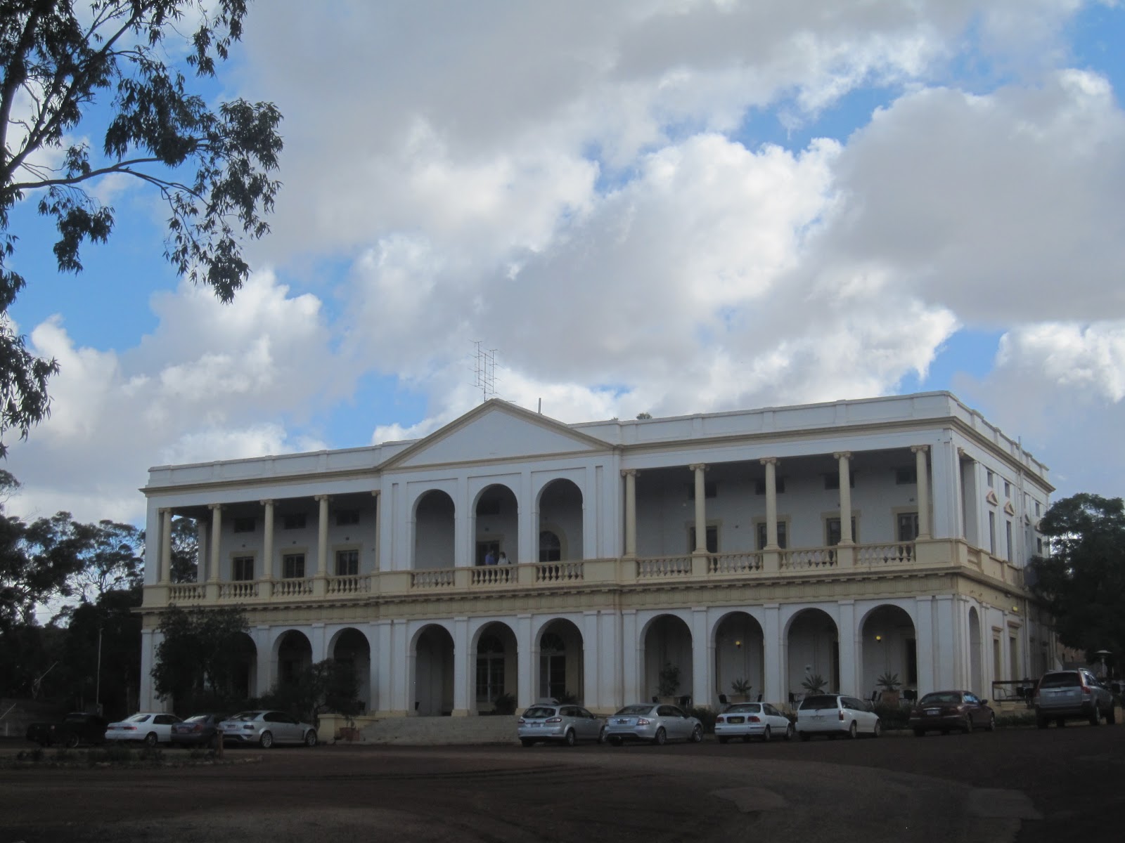 This establishment started off its life as a hostel and guest house. Walking up the muddy circular driveway I can imagine the owners and builders of this place (the Monks) having a vision of those stately old European mansions, with columns spanning the two levels and solid wide steps leading to the Italian tiled patio chess- boarding it's way through to the statement-like front double doors. Once inside there was an enclosed reception office to the right, an informal sitting area to the left with a cavernous foyer in the middle. All leading up to a grand stair case. Jarrah everywhere!. Upstairs, laid out on one side of the corridor were all the bedrooms each with their own entrance to the outside shared balcony.
